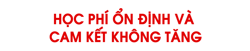 "Chất lượng quốc tế, học phí Việt Nam" là cam kết cho sinh viên, đảm bảo một chương trình đào tạo đạt chuẩn quốc tế ngay tại Việt Nam với mức học phí hợp lý, phù hợp với điều kiện kinh tế gia đình. Đặc biệt, nhà trường cam kết ổn định, không tăng học phí suốt toàn khóa học, giúp sinh viên và phụ huynh an tâm lập kế hoạch tài chính dài hạn.